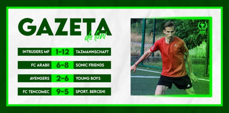 📝In meciul de deschidere s-au intalnit Intruders MF si Tazmannschaft, doua echipe cu obiective diferite. Tazmanienii sunt deja calificati in cea mai importanta competitie de minifotbal din capitala, care va lua startul la inceputul lunii septembrie – Superliga Bucuresti – organizata de AMMB, in timp ce Intruders spera sa prinda primele 24 de pozitii si sa isi asigure prezenta in Liga 1. Prima repriza a fost destul de echilibrata, Selaru a deschis scorul in minutul 7 dupa un un-doi de zile mari cu colegul sau Scumpu Andrei. La doar 1 minut distanta, Andrei reuseste sa dubleze avantajul echipei si in doar 60 de secunde bifeaza gol si pasa de gol. Au urmat 13 minute de joc echilibrat, cu un stil pe contre, dar cu aceeasi dominare din partea echipei Tazmann. In ultimul minut de joc, fostul jucator al Stelei, Stelian Stancu, duce scorul la 3-0. Repriza a 2-a a fost un festival de goluri, iar conditia fizica a echipei conduse de Simon Tudor si-a spus cuvantul si au reusit sa mai marcheze de inca 9 ori in doar 20 de minute. Abia sosit in echipa, Zaina Ionut, si-a trecut in cont o tripla in minutele 22, 32 si 35, iar Stelian Stancu a facut si el hattrick-ul in minutele 29 si 36. Lista a fost completata de golurile lui Sebastian Vasile (37), in timp ce Selaru face dubla in minutul 38, Petrescu Ionut in 39 si Simon Tudor in ultimul minut de joc. Golul de onoare pentru Intruders MF a fost marcat in minutul 26 de Andrei Cerbu.